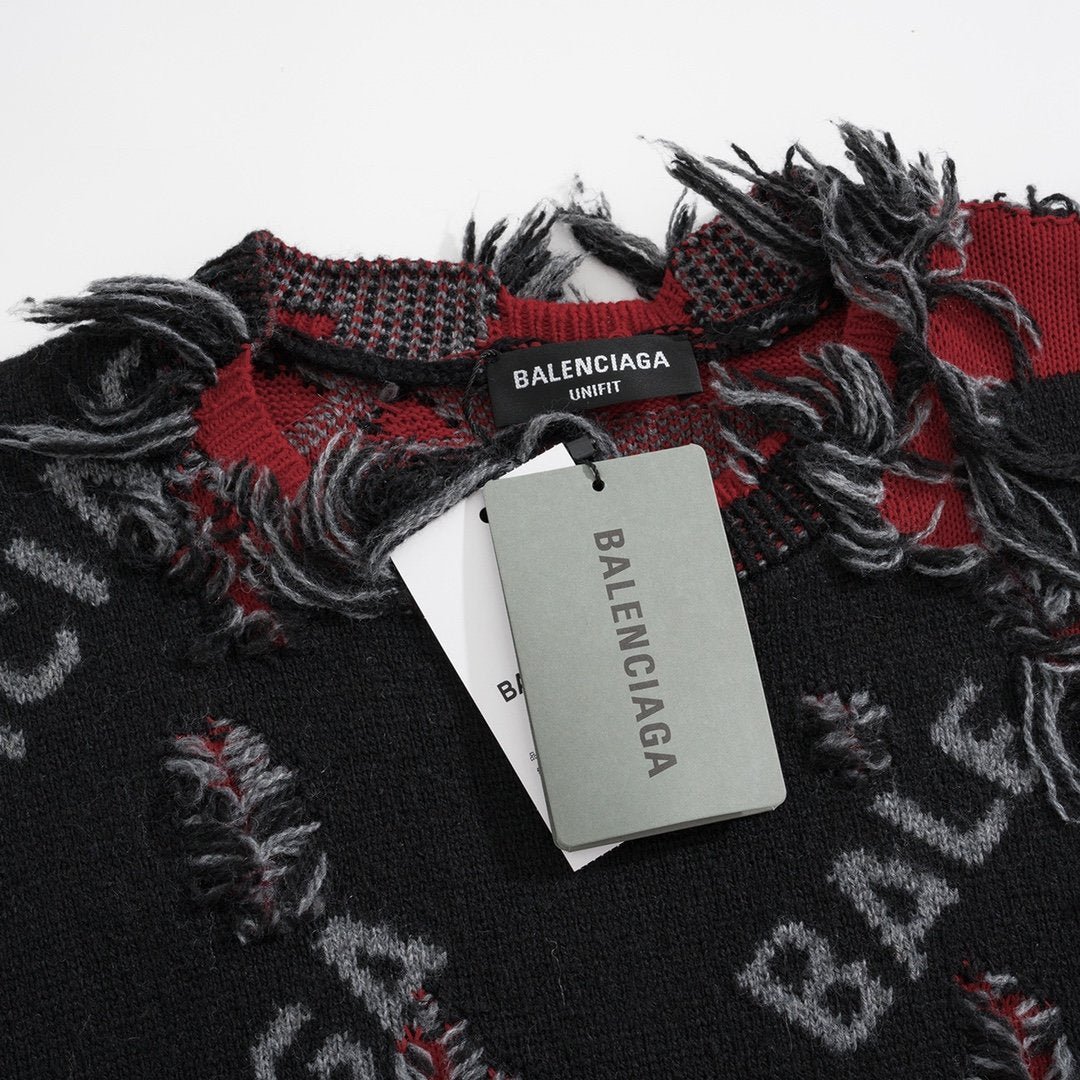 Balenciaga Knitted Rip Sweater Black Red