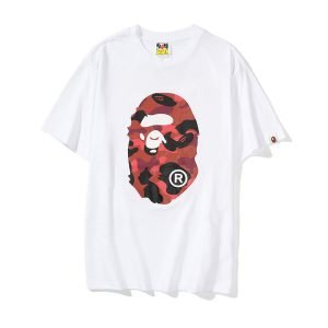 Bape Camo Logo Print Shirt White / Red