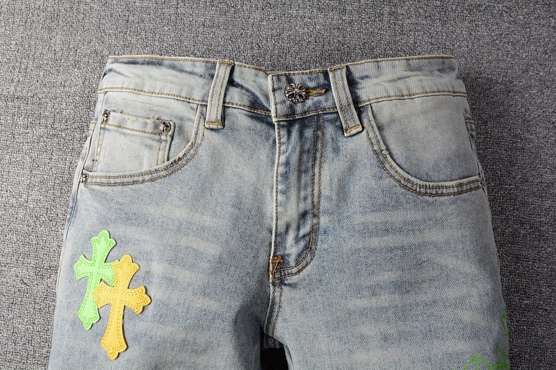 Chrome Hearts Logo Jeans Grey/Yellow/Green
