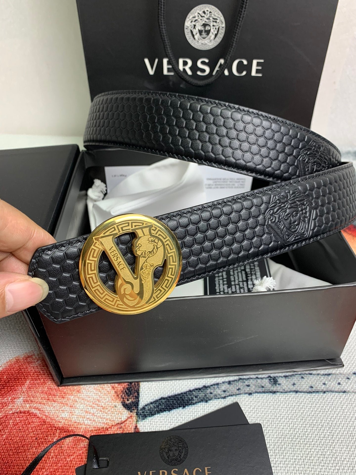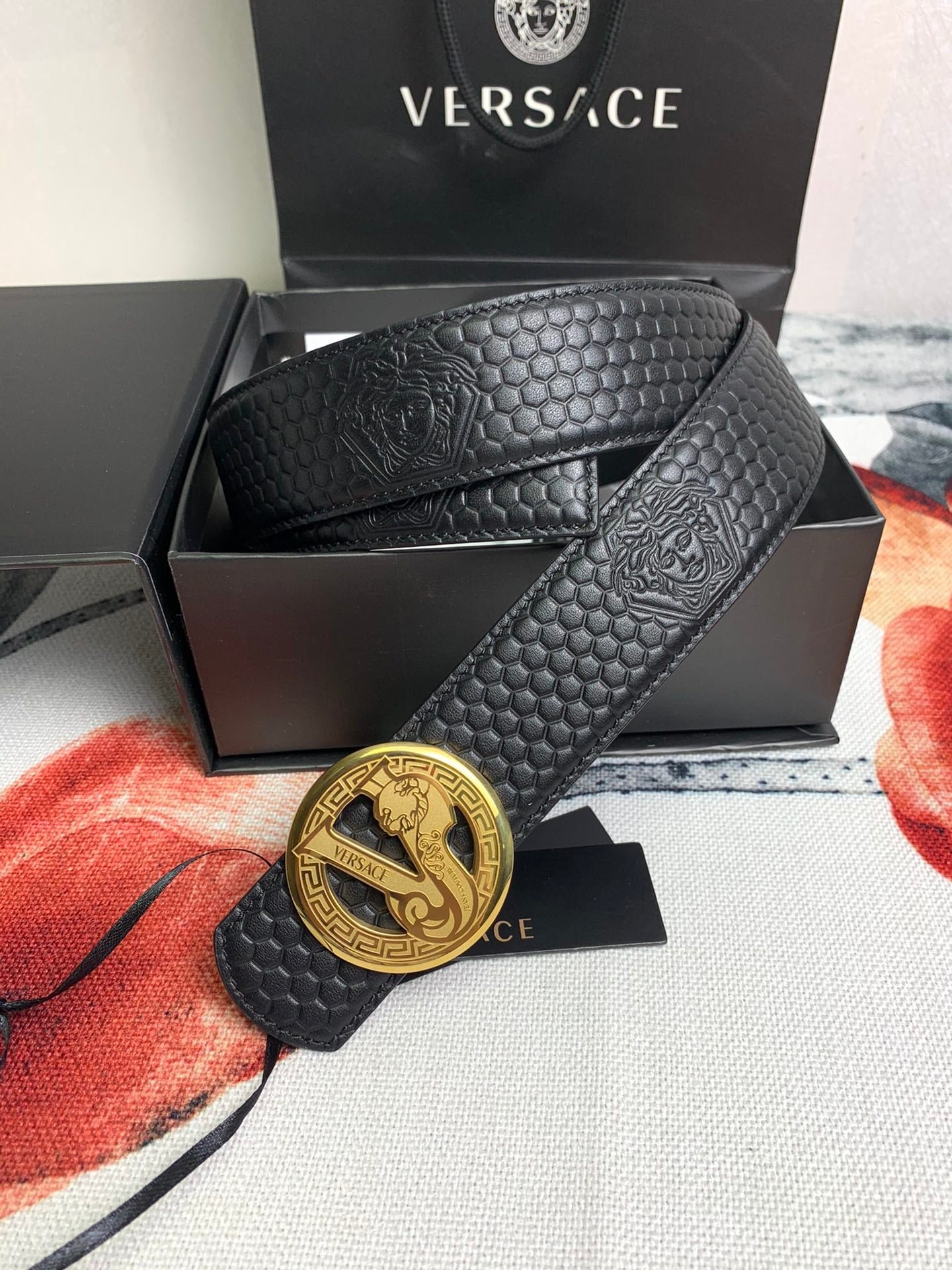 Be the first to review “Versace Gold Logo Circle V Buckle Belt Black” Antwort abbrechen