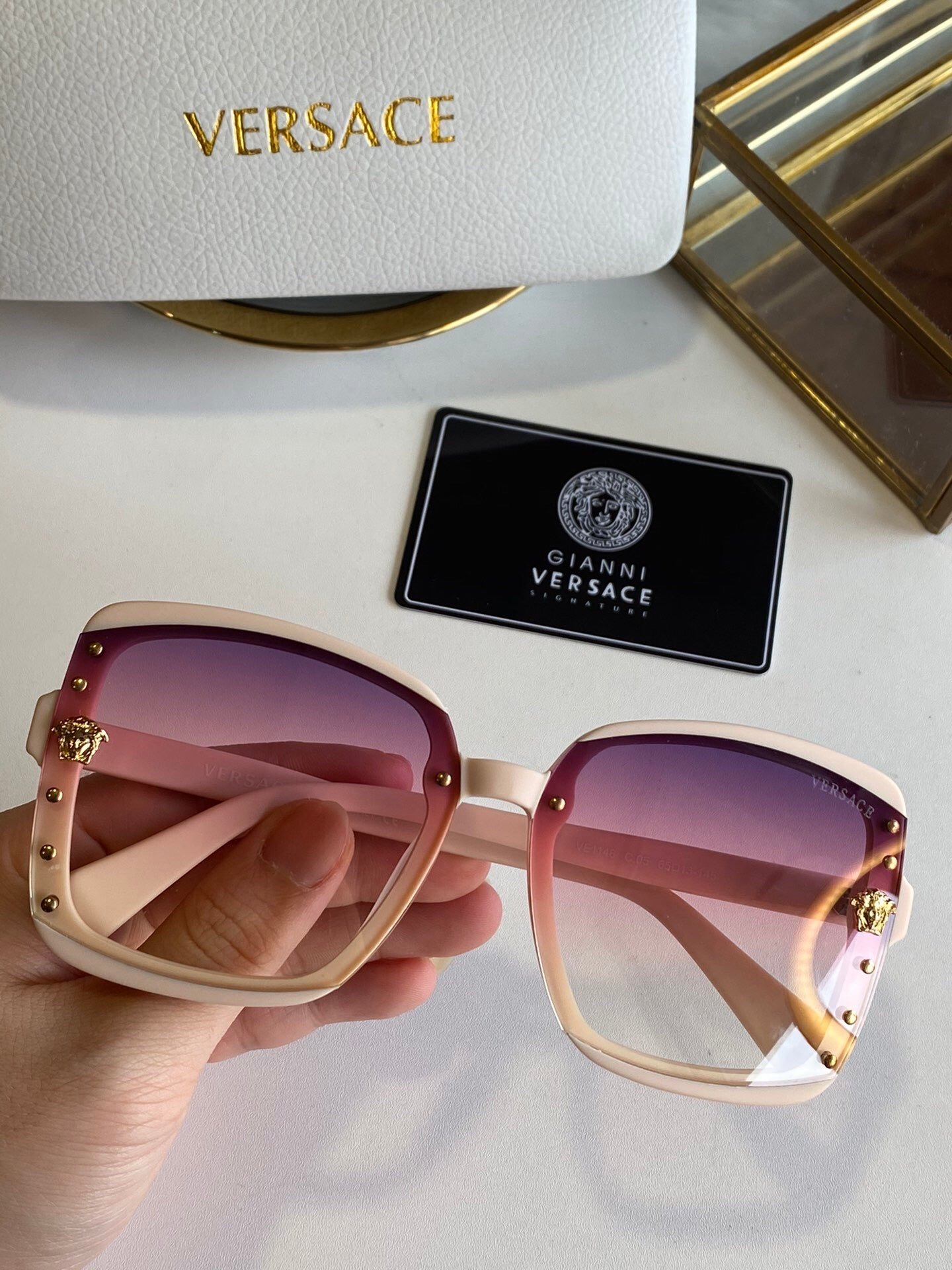 Versce Dots And Logo Sunglasses Pink Gradient quantity