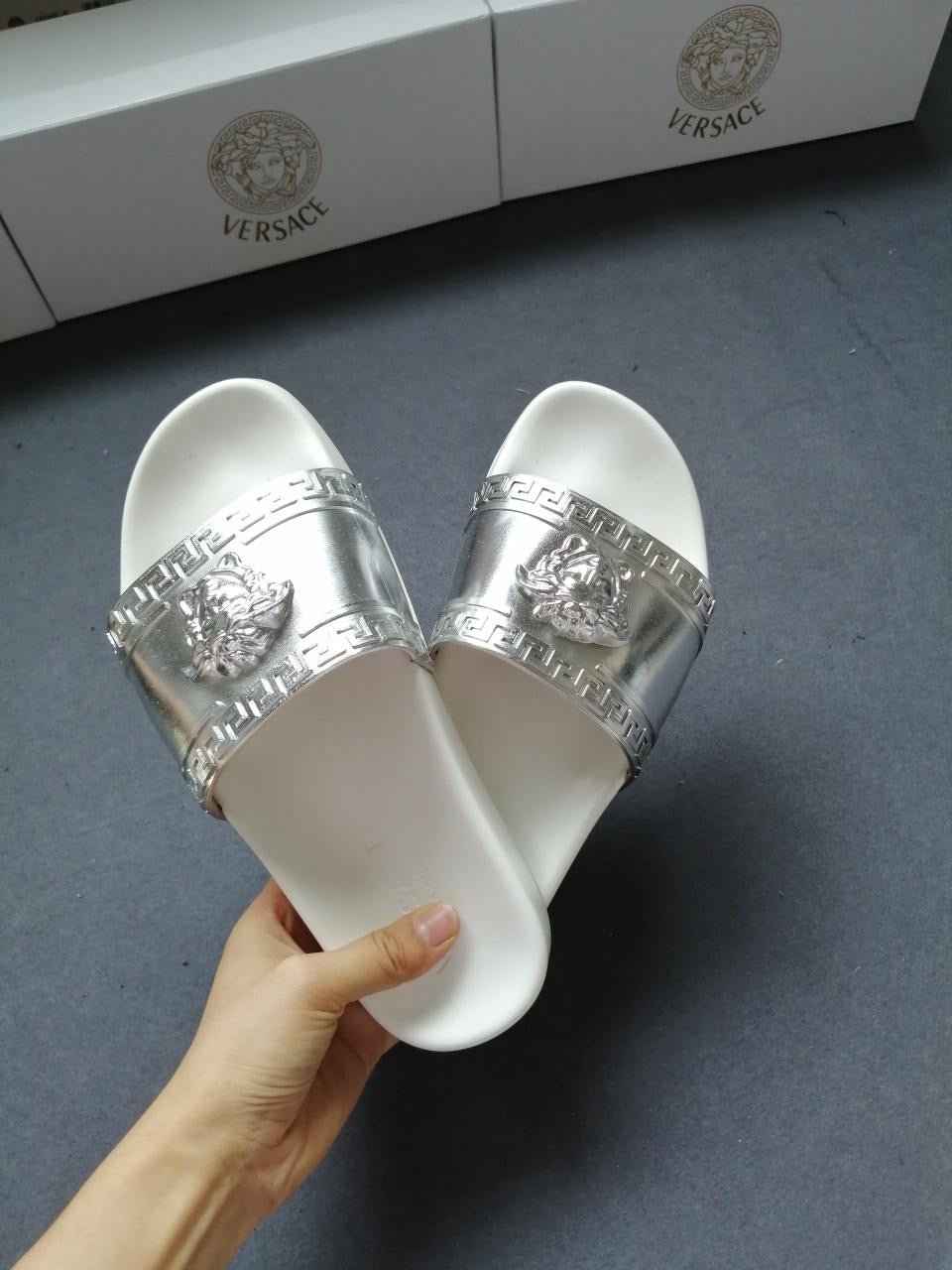 Versce Logo Slides White/Sliver